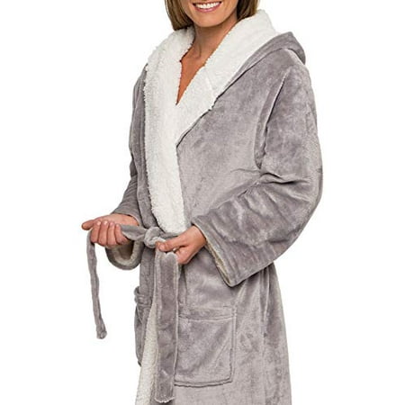 Womens Sherpa Lined Long Robe Luxury Full Length Plush Fleece Bathrobe Silver Lilly Grey Small Medium Walmart Canada